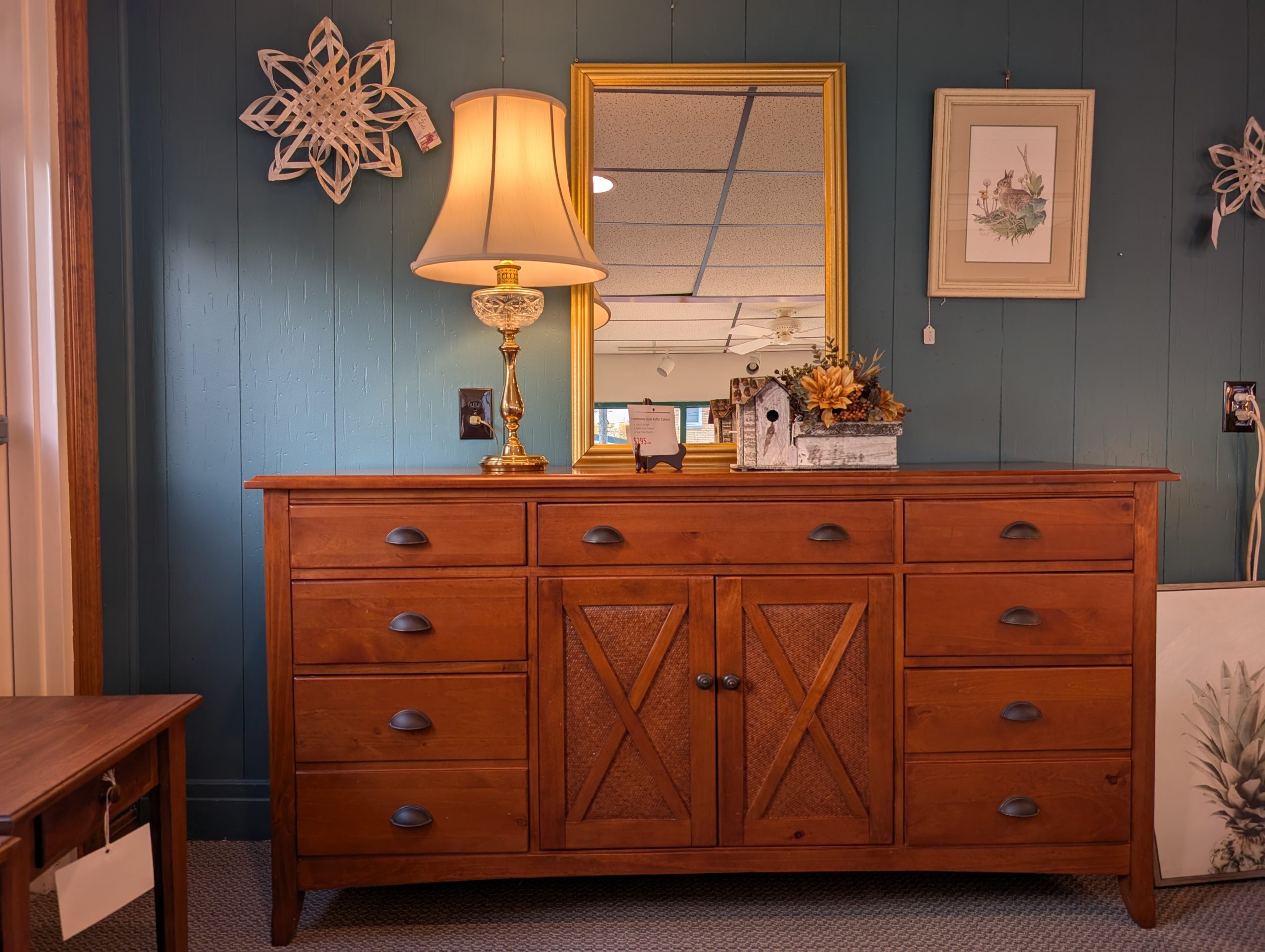 - Farmhouse style buffet cabinet